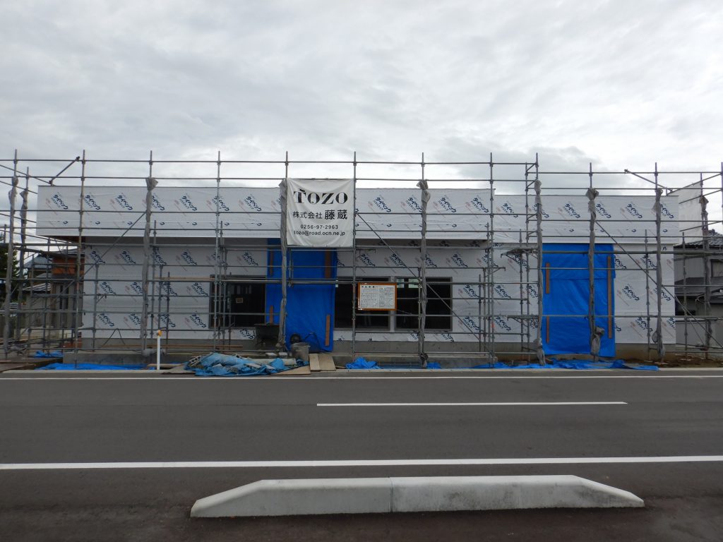 外部の防水シート(タイベックシート)張りを行い、構造用合板の雨による合板の膨れを抑え・・・