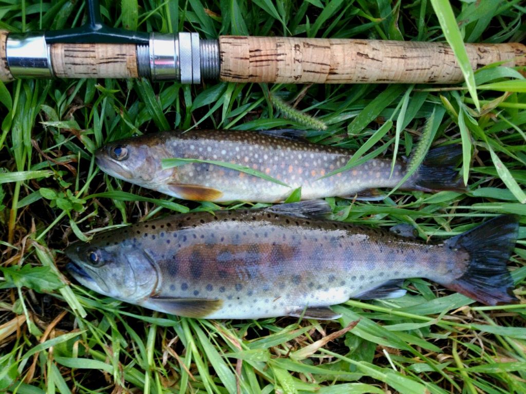 食べごろサイズ、2匹だけお持ち帰りです。(イワナは持ち帰るには小さいと思いましたが、エラをフックで痛めてしまったので、かわいそうと思いながらも、持ち帰ることに。美味しく食べるからね、ごめんねイワナ君。)
