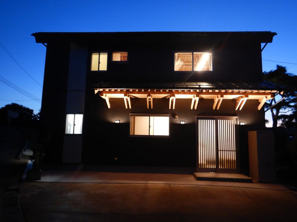 庇下からのアッパーライトによる間接照明が、建物前の空間をも包絡し取り込み、建物の一部としての広がりに一役買っていますね。