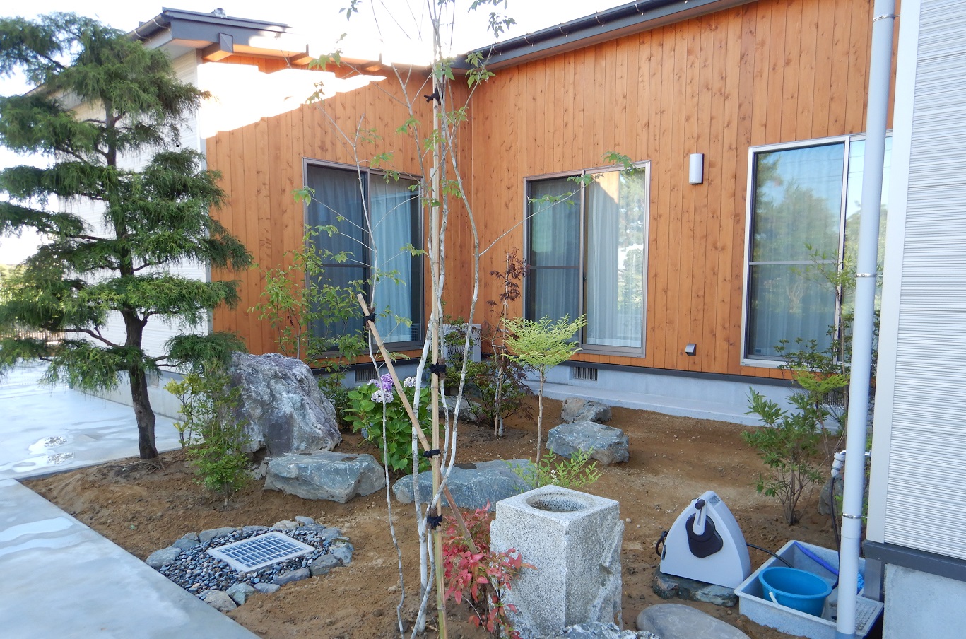 T様邸 住宅棟外構Ⅰ期工事 における、植栽造園工事が完了いたしました。