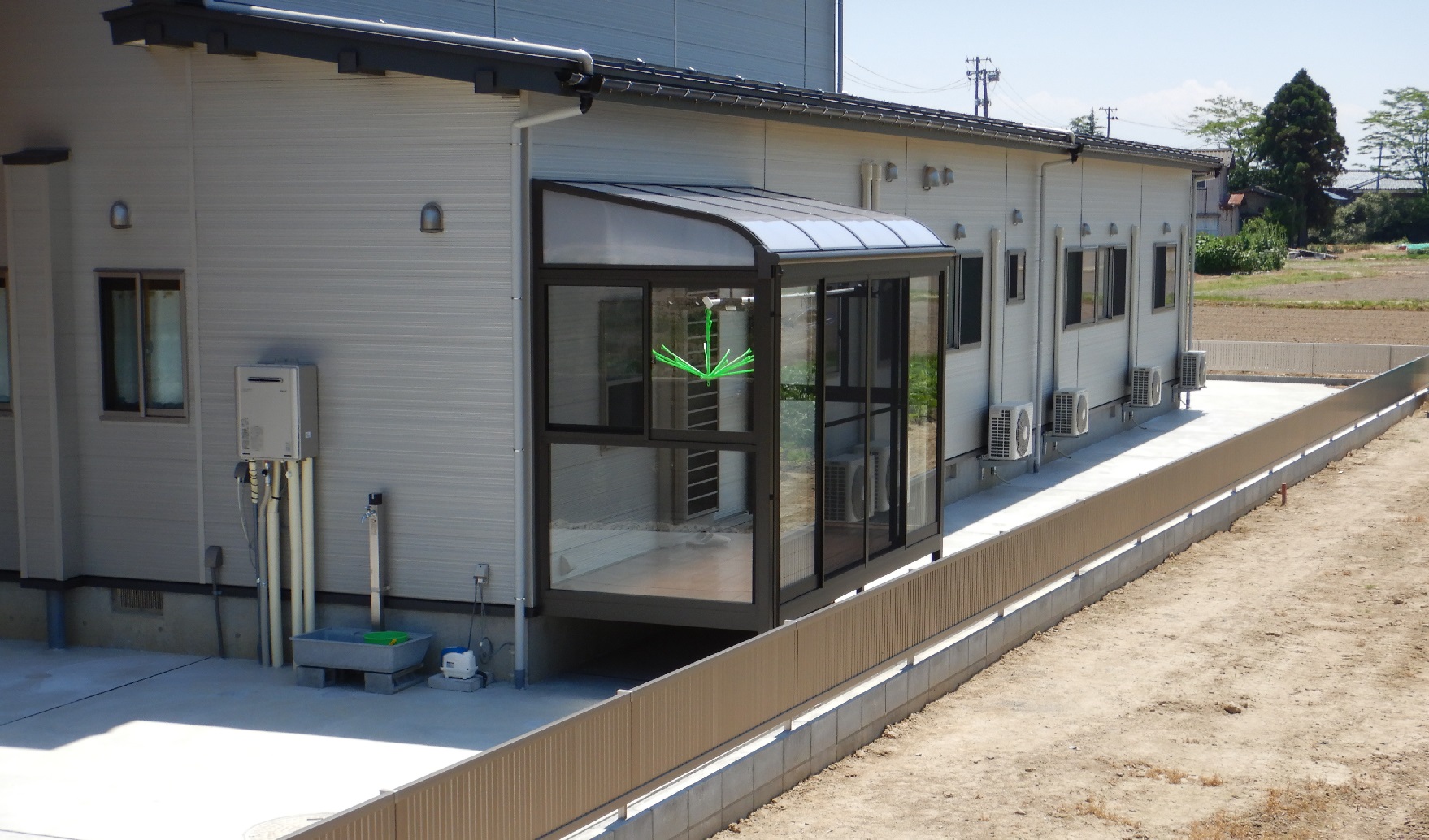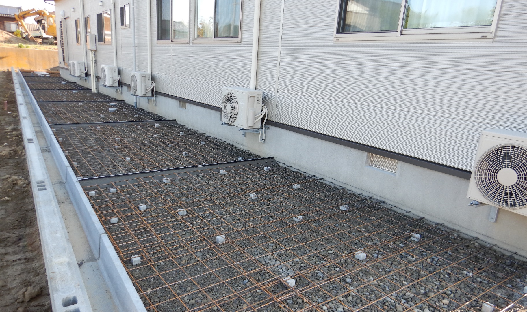 1)5月末~6月初旬にかけて、外構Ⅰ期工事として、住宅棟廻りの外構工事を行わせて頂きました。